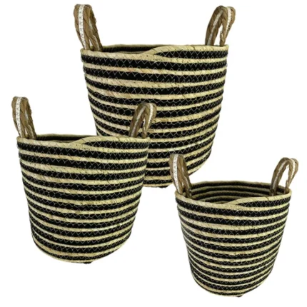 ΚΑΛΑΘΟΥΝΑ ΨΑΘΑ ΣΕΤ/3 ΦΥΣΙΚΟ/ΜΑΥΡΟ ΣΧΕΔΙΟ ΡΙΓΕ – L:Φ35×26/36, M:Φ30×24/33, S: Φ25×22/28cm 4/KIB