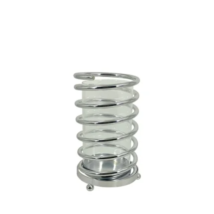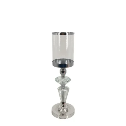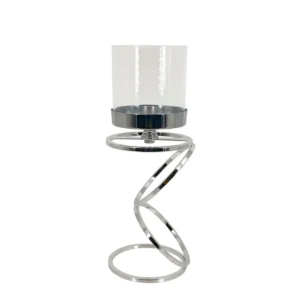 ΚΗΡΟΠΗΓΕΙO ΜΕΤΑΛΛΙΚO ΑΣΗΜΙ/ΛΕΥΚΟ ΜΙΚΡΟ ΜΟΝΤΕΡΝΟΙ ΚΥΚΛΟΙ ΜΕ ΓΥΑΛΙ ΜΟΝΟ – Φ10x29cm 24/ΚΙΒ