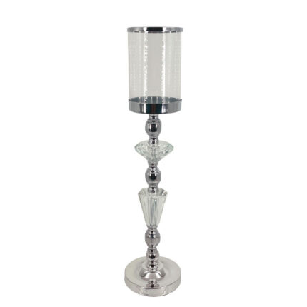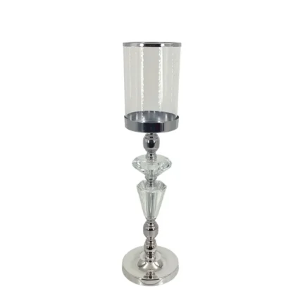 ΚΗΡΟΠΗΓΕΙO ΜΕΤΑΛΛΙΚO ΑΣΗΜΙ/ΛΕΥΚΟ ΜΕΓΑΛΟ ΜΟΝΤΕΡΝΟΙ ΚΥΚΛΟΙ ΜΕ ΓΥΑΛΙ ΜΟΝΟ – Φ12x36cm 24/ΚΙΒ