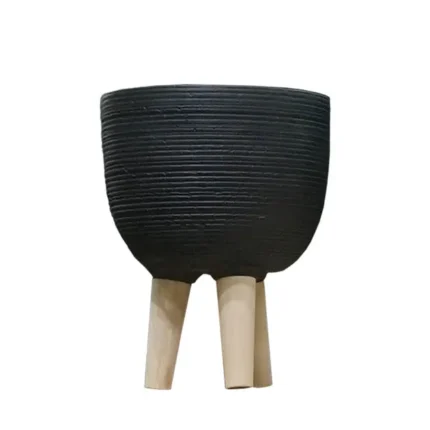ΚΑΣΠΩ ΜΑΥΡΟ ΤΣΙΜΕΝΤENIO ΣΤΡΟΓΓΥΛΟ ME ΞΥΛΙΝΑ ΠΟΔΙΑ Φ25.5×23/33.5cm 2/ΚΙΒ