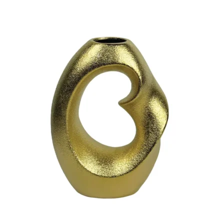 ΚΕΡΑΜΙΚΟ ΒΑΖΟ ΧΡΥΣΟ ΧΥΤΟ ΣΤΡΙΦΤΟ ΜΕ ΤΡΥΠΑ – 22.9cm 12/ΚΙΒ