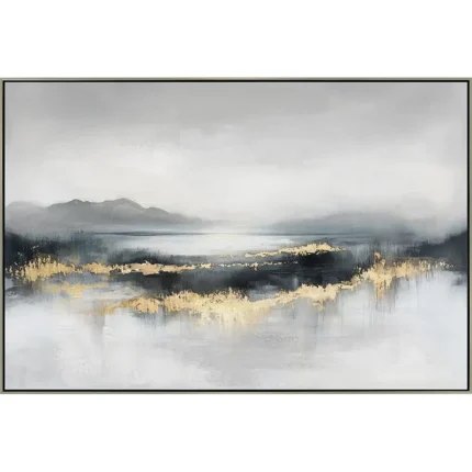 ΠΙΝΑΚΑΣ ΚΑΜΒΑΣ ΑΣΠΡΟΜΑΥΡΟ/ΧΡΥΣΟ ΛΙΜΝΗ & ΒΟΥΝΑ ΣΕ ΚΟΡΝΙΖΑ – 122.5×82.5×3.5cm 6/KIB