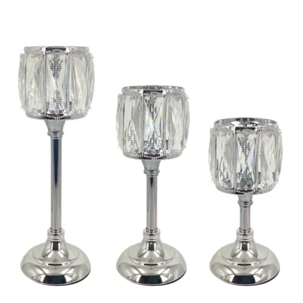 ΚΗΡΟΠΗΓΕΙO ΜΕΤΑΛΛΙΚO ΑΣΗΜΙ/ΛΕΥΚΟ ΜΕ ΓΥΑΛΙ ΚΡΥΣΤΑΛΛΑ ΜΠΟΥΜΠΟΥΚΙΑ ΜΕΓΑΛΟ – Φ18×49.5cm 6/ΚΙΒ