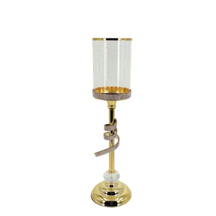 ΚΗΡΟΠΗΓΕΙO ΜΕΤΑΛΛΙΚO ΧΡΥΣΟ/ΛΕΥΚΟ ΜΟΝΟ ΚΟΡΔΕΛΑ ME ΚΡΥΣΤΑΛΛO, ΣΤΡΑΣΣ & ΓΥΑΛΙ ΜΕΓΑΛΟ – Φ12x50cm 12/ΚΙΒ
