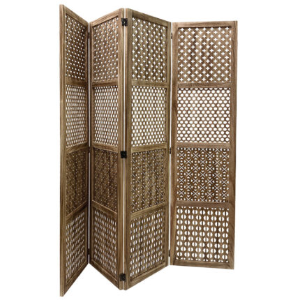 ΠΑΡΑΒΑΝ ΞΥΛΙΝΟ ΦΥΣΙΚΟ ΚΑΦΕ ME ΔΙΑΤΡΗΤΑ ΜΟΤΙΒΑ ΜΠΟΧΟ – 160(4×40)x170cm 1/KIB