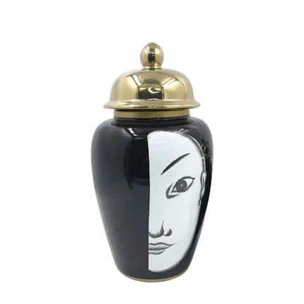 ΚΕΡΑΜΙΚΟ ΚΥΚΛΙΚΟ ΒΑΖΟ ΜΕ ΚΑΠΑΚΙ ΜΙΚΡΟ ΑΣΠΡΟΜΑΥΡΑ ΣΧΗΜΑΤΑ – 23x9x28cm 4/KIB