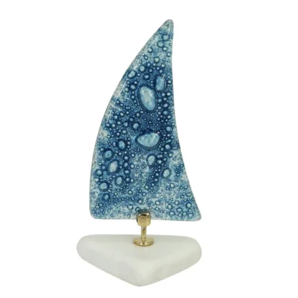 ΔΙΑΚΟΣΜΗΤΙΚΟ ΓΥΑΛΙΝΟ ΦΟΥΤΖΙ ΜΠΛΕ ΜΕ ΚΑΡΑΒΑΚΙ ΜΕΤΑΛΛΙΚΟ – 12x11cm