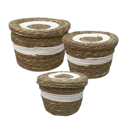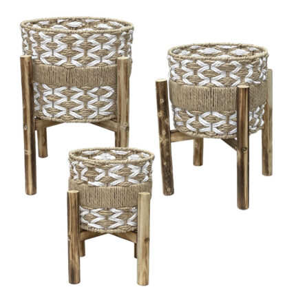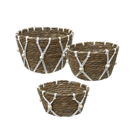 ΚΑΣΠΩ-ΚΑΛΑΘΙ ΡΑΤΑΝ ΣΕΤ3 ΣΕ ΞΥΛΙΝΗ ΒΑΣΗ ΦΥΣΙΚΟ ΚΑΦΕ/ΛΕΥΚΟ ΠΛΕΞΗ ΔΙΧΤΥΩΤΗ ΜΕ ΚΟΡΔΟΝΙ – L:Φ30×43, M:Φ25×37, S:Φ22x32cm 6/KIB
