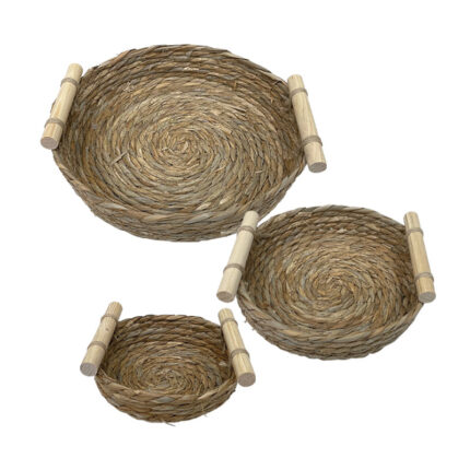 ΚΑΛΑΘΟΥΝΕΣ ΡΑΤΑΝ ΣΕΤ3 ΦΥΣΙΚΟ ΚΑΦΕ/ΜΠΕΖ ΣΤΡΟΓΓΥΛΟ ΣΕ ΠΛΕΞΗ ΡΙΓΕ – L:Φ48×41, M:Φ37×32, S:Φ29x25cm 2/KIB
