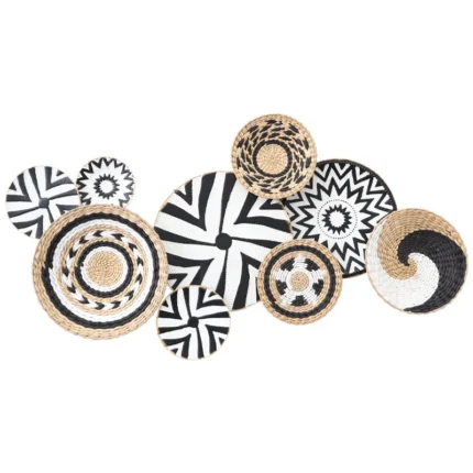 ΜΕΤΑΛΛΙΚO-ΨΑΘΙΝΟ TOIXOY ΧΡΥΣΟ/ΜΑΥΡΟ/ΛΕΥΚΟ/ΚΑΦΕ ΚΥΚΛΟΙ ΣΤΥΛ BOHO – 107.3×57.8×8.9cm 4/KIB