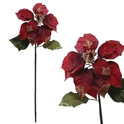 ΧΡΙΣΤΟΥΓ. ΚΛΑΔΙ ΔΕΡΜΑΤΙΝΗ ΦΥΛΛΟ ΚΟΚΚΙΝΟ 84cm. 12/144 ΚΙΒ