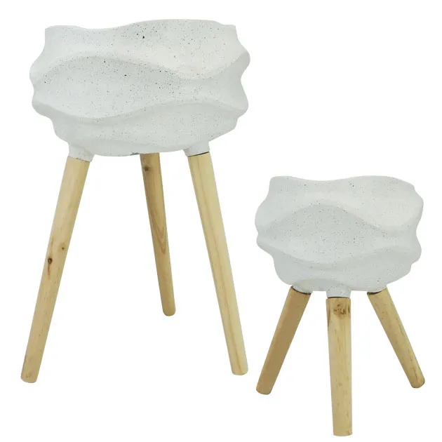 ΚΑΣΠΩ ΚΕΡΑΜΙΚΟ ΕΚΡΟΥ ΚΥΜΑΤΙΣΤΟ ΜΕ ΠΟΔΙΑ ΞΥΛΙΝΑ ΣET/2 – L:Φ32×58, S:Φ24x36cm 6/ΚΙΒ