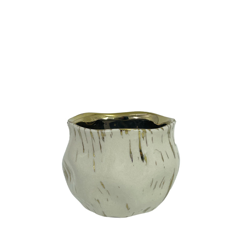 ΚΑΣΠΩ ΣΤΡΟΓΓΥΛΟ ΕΚΡΟΥ/ΧΡΥΣΟ ΥΑΛΩΜΕΝΟ ΠΟΥΓΚΙ ΜΕ ΒΑΘΟΥΛΩΜΑΤΑ ΜΙΚΡΟ – Φ12.5x11cm 1/24ΚΙΒ