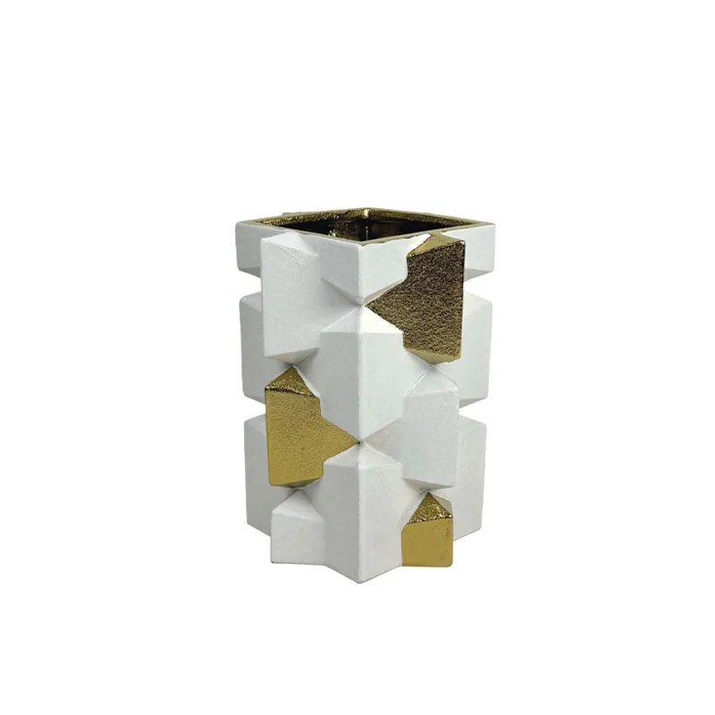 ΚΕΡΑΜΙΚΟ ΒΑΖΟ ΛΕΥΚΟ/ΧΡΥΣΟ ΤΕΤΡΑΓΩΝΑ ΧΙΑΣΤI SMALL – 24.1cm 1/4ΚΙΒ