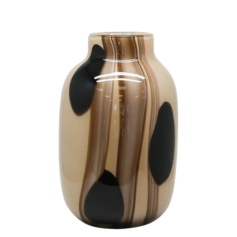 ΒΑΖΟ ΑΠΟ ΦΥΣΗΤΟ ΓΥΑΛΙ ΚΑΜΠΥΛΩΤΟ ΜΠΕΖ, ΚΑΦΕ ΓΡΑΜΜΕΣ & ΒΟΥΛΕΣ – Φ22x35cm 2/ΚΙΒ