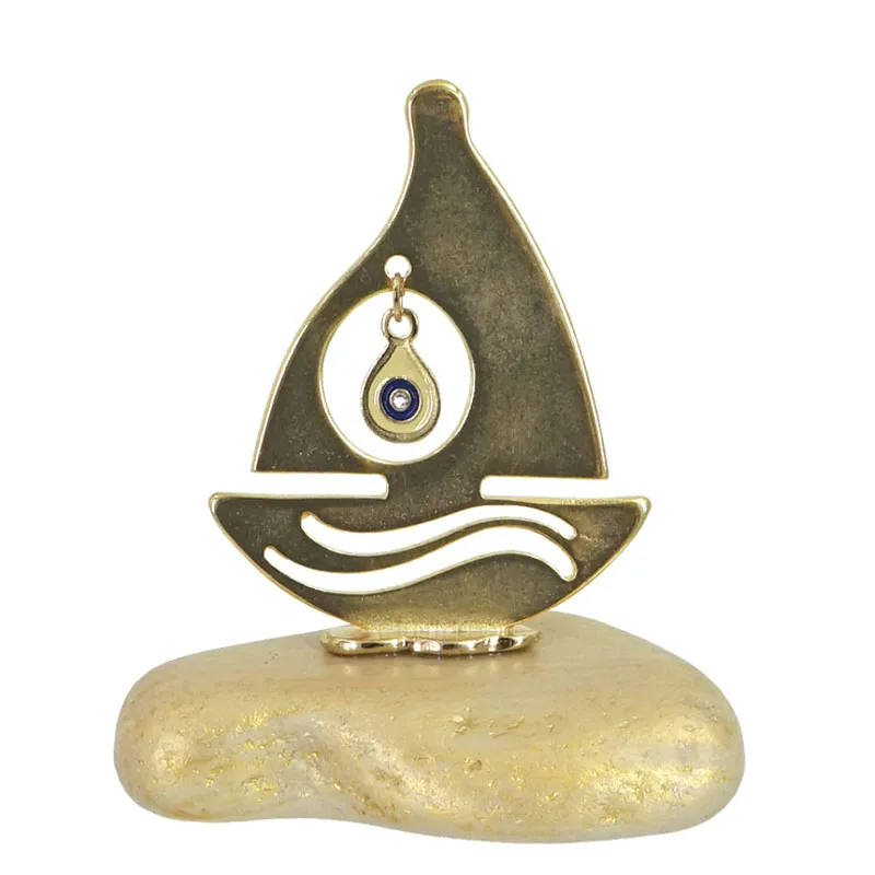 ΚΑΡΑΒΙ ΧΡΥΣΟ ΕΠΙΤΡΑΠΕΖΙΟ ΦΟΥΤΖΙ ΓΥΑΛΙ ΤΥΡΚΟΥΑΖ/ΛΕΥΚΟ 12x11cm.