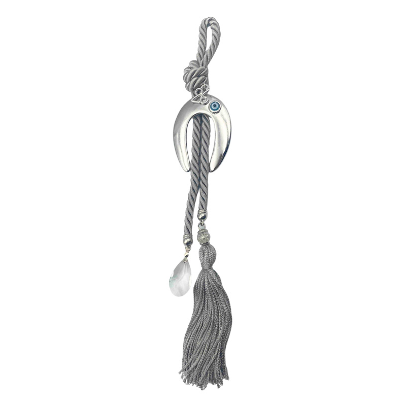 ΓΟΥΡΙ ΚΡΕΜΑΣΤΟ ΚΟΡΔΟΝΙ ΓΚΡΙ,ΠΕΤΑΛΟ ΜΕ ΜΑΤΙ ΑΣΗΜΙ ΚΑΙ ΚΡΥΣΤΑΛΛΟ – Y30cm