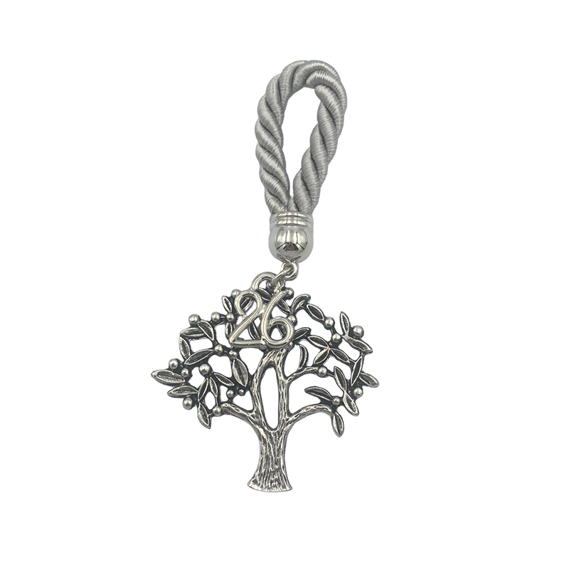 ΓΟΥΡΙ ΚΡΕΜΑΣΤΟ ΚΟΡΔΟΝΙ ΓΚΡΙ ΜΕ ΔΕΝΤΡΟ ΕΛΙΑΣ ΑΣΗΜΙ – Y9.5cm