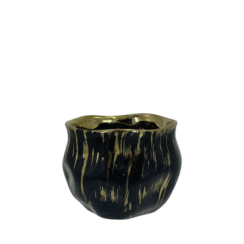 ΚΑΣΠΩ ΣΤΡΟΓΓΥΛΟ ΜΑΥΡΟ/ΧΡΥΣΟ ΥΑΛΩΜΕΝΟ ΠΟΥΓΚΙ ΜΕ ΒΑΘΟΥΛΩΜΑΤΑ ΜΙΚΡΟ – Φ12.5x11cm 1/24ΚΙΒ