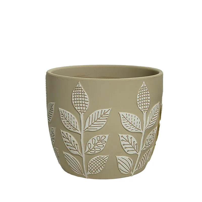 ΚΑΣΠΩ ΣΤΡΟΓΓΥΛΟ ΜΠΕΖ/ΕΚΡΟΥ ΣΧΕΔΙΑ ΦΥΛΛΩΝ – Φ16.5×15.2cm 12/ΚΙΒ