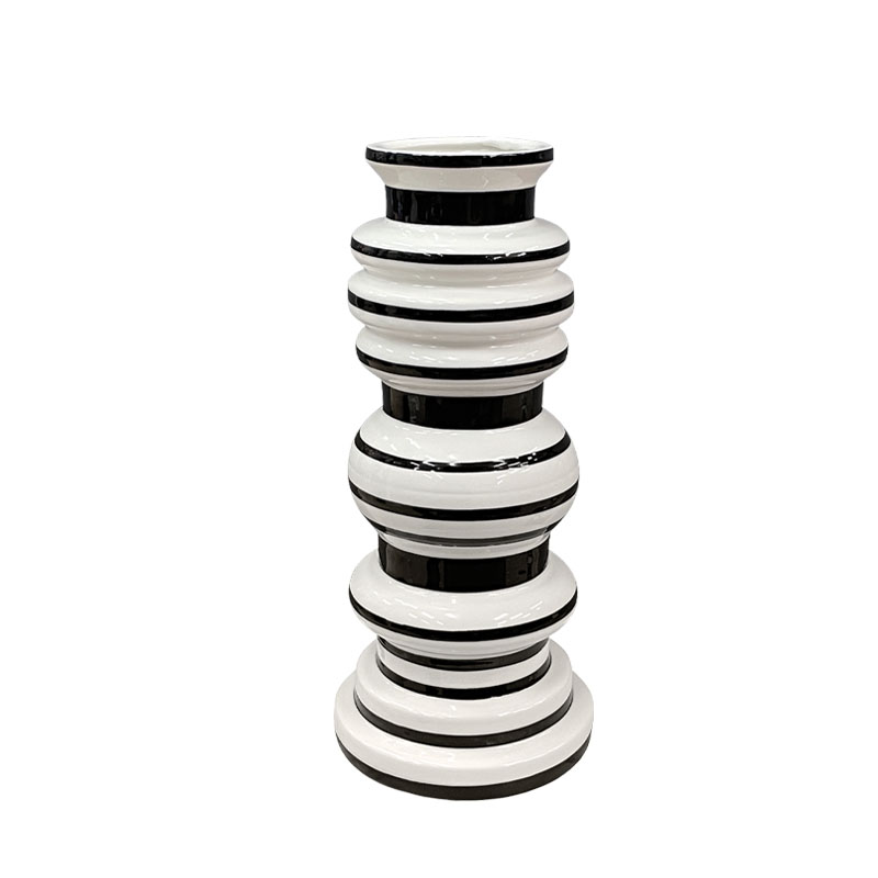 ΚΕΡΑΜΙΚΟ ΒΑΖΟ ΑΣΠΡΟ/ΜΑΥΡΟ ΚΥΚΛΙΚΟ - ΜΙΝΙΜΑΛ ΓΡΑΜΜΕΣ/ΔΑΚΤΥΛΙΟΙ - Φ23.5x11.5cm 36/KIB