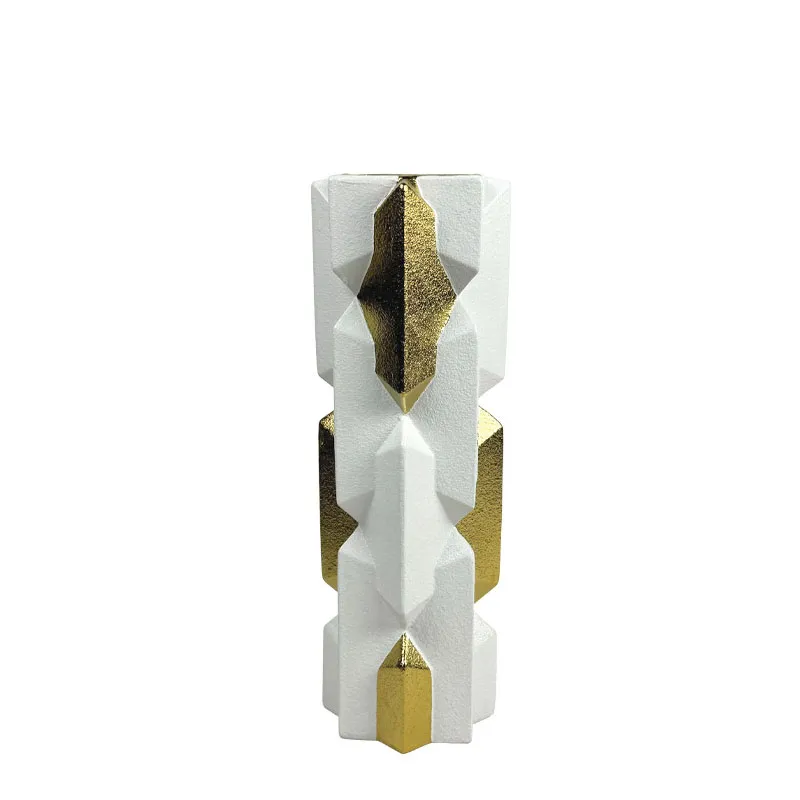 ΚΕΡΑΜΙΚΟ ΒΑΖΟ ΛΕΥΚΟ/ΧΡΥΣΟ ΤΕΤΡΑΓΩΝΑ ΧΙΑΣΤI LARGE – 36.8cm 9/ΚΙΒ