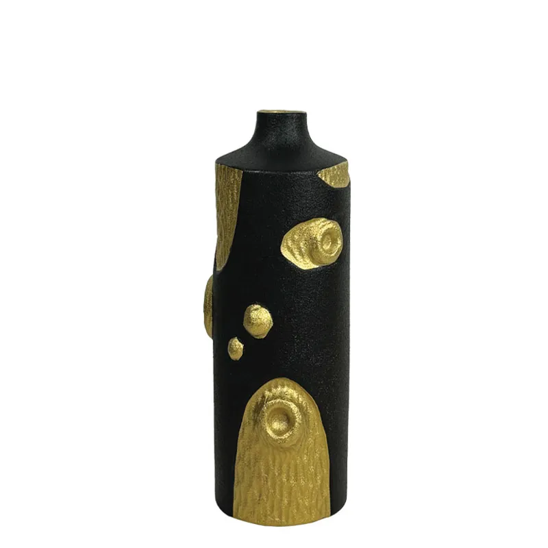 ΚΕΡΑΜΙΚΟ ΒΑΖΟ ΜΑΥΡΟ ΨΗΛΟ ME ΧΡΥΣA ΠΡΟΣΘΕΤΑ ΚΟΜΜΑΤΙΑ ΜΕΣΑΙΟ – 36.8cm 9/ΚΙΒ