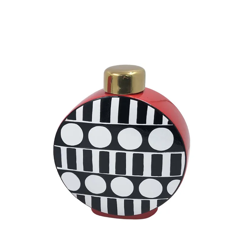 ΚΕΡΑΜΙΚΟ ΚΥΚΛΙΚΟ ΒΑΖΟ ΜΕ ΚΑΠΑΚΙ ΜΙΚΡΟ ΑΣΠΡΟΜΑΥΡΑ ΣΧΗΜΑΤΑ – 23x9x28cm 4/KIB