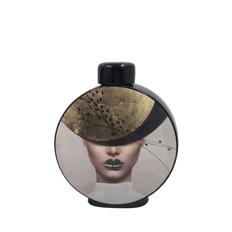 ΚΕΡΑΜΙΚΟ ΚΥΚΛΙΚΟ ΚΟΥΠ ΜΕ ΚΑΠΑΚI ΜΙΚΡΟ ΓΥΝΑΙΚΑ ΜΕ ΚΑΠΕΛΟ ΜΑΥΡΟ/ΧΡΥΣΟ & ΨΑΡΑΚΙΑ – 23x9x28cm 4/KIB