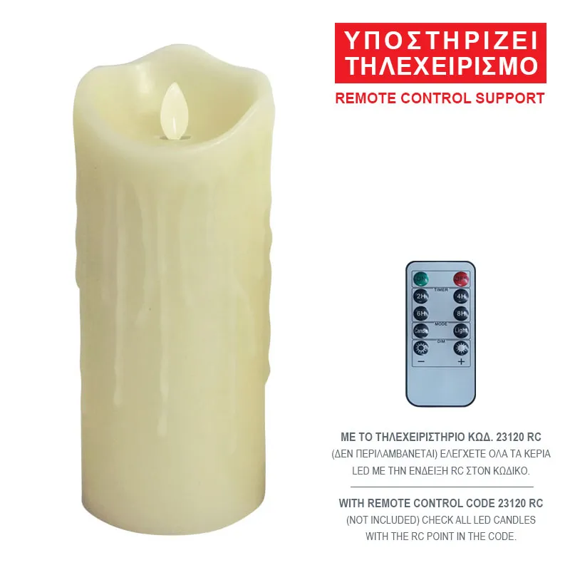 ΚΕΡΙ LED ΕΚΡΟΥ ΜΕ ΕΠΙΚΑΛΥΨΗ ΚΕΡΙΟΥ, ΚΙΝΟΥΜΕΝΗ ΦΛΟΓΑ, ΤΗΛΕΧΕΙΡΙΣΜΟΣ – Φ7.5x20cm 60/ΚΙΒ
