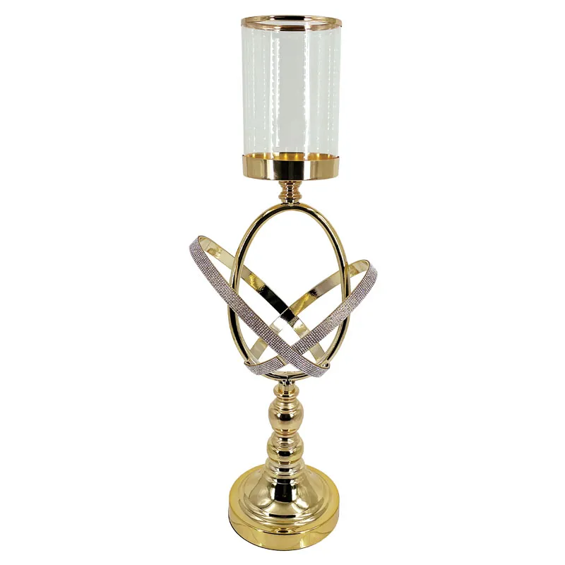 ΚΗΡΟΠΗΓΕΙΟ ΜΕΤΑΛΛΙΚΟ ΧΡΥΣΟ/ΛΕΥΚΟ ΧΙΑΣΤΙ ΔΑΚΥΛΙΟΙ ΜΕ ΓΥΑΛΙ & ΣΤΡΑΣΣ ΜΕΓΑΛΟ – Φ19x57cm 12/ΚΙΒ