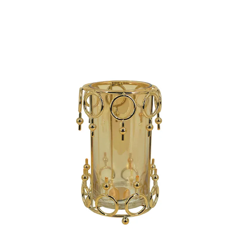 ΚΗΡΟΠΗΓΕΙΟ ΜΕΤΑΛΛΙΚΟ ΧΡΥΣΟ/ΜΕΛΙ ΚΥΛΙΝΔΡΟΣ ΚΥΚΛΩΝ ΜΕΣΑΙΟ ΜΕ ΓΥΑΛΙ – Φ12x22cm 24/ΚΙΒ