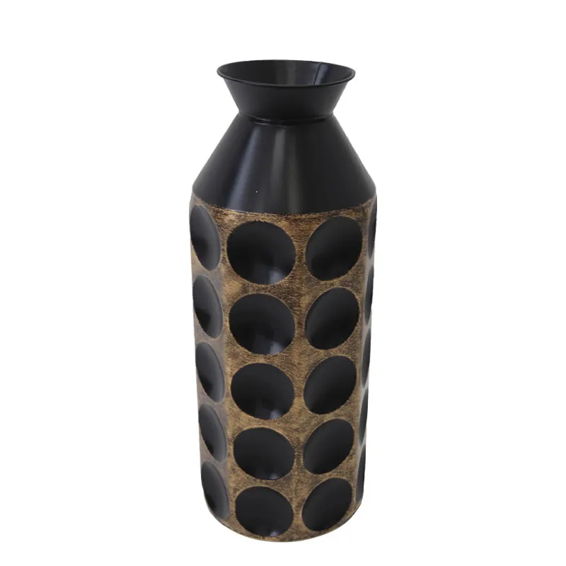 ΜΕΤΑΛΛΙΚΟ ΒΑΖΟ ΜΑΥΡΟ/ΧΡΥΣΟ ΚΥΚΛΟΙ – Φ19.7×51.4cm 4/KIB
