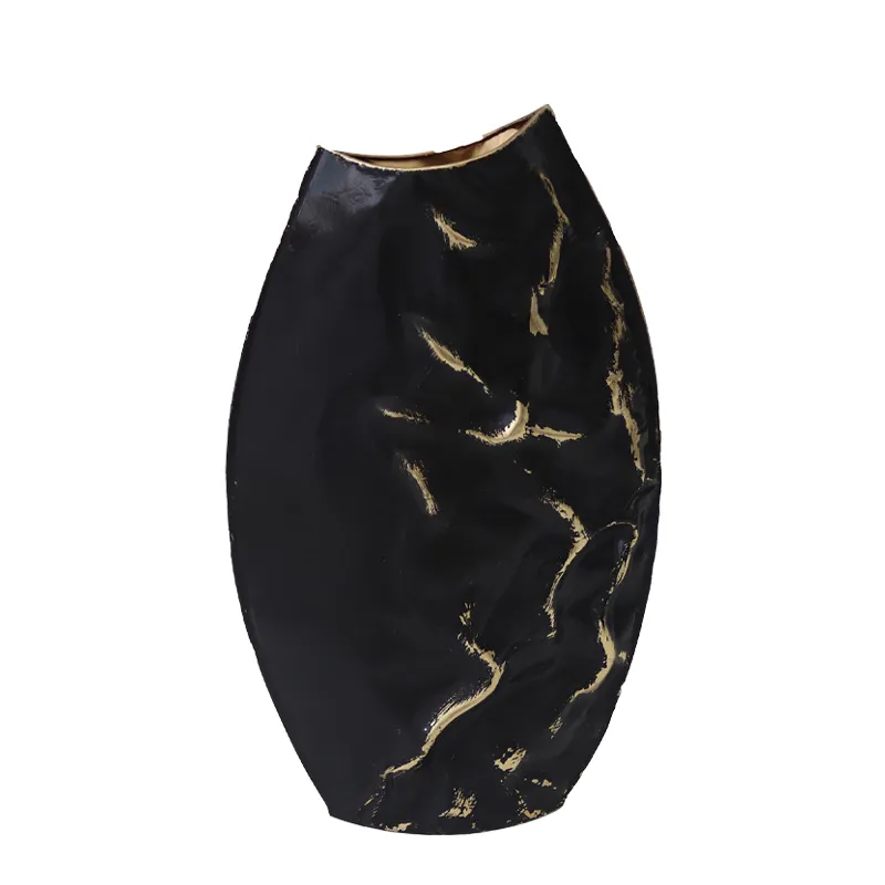 ΜΕΤΑΛΛΙΚΟ ΒΑΖΟ ΜΑΥΡΟ/ΧΡΥΣΟ ΤΣΑΛΑΚΩΤΟ – 27.3×10.2×45.7cm 4/KIB