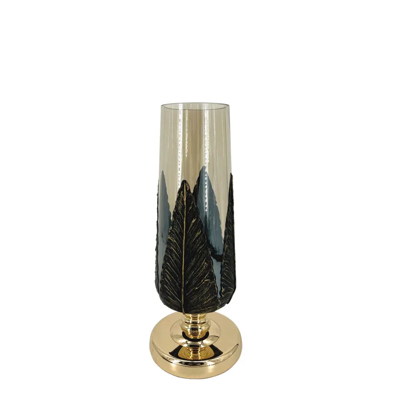 ΜΕΤΑΛΛΙΚΟ/ΓΥΑΛΙΝΟ ΒΑΖΟ ΧΡΥΣΟ/ΜΑΥΡΟ ΦΥΛΛΑ – Φ15x37cm 4/ΚΙΒ