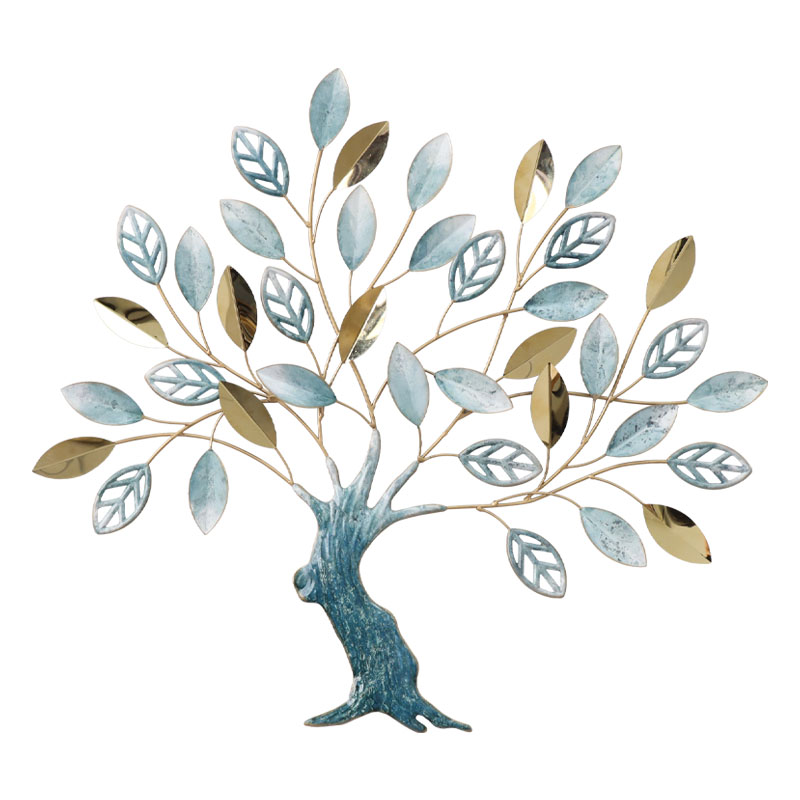 ΜΕΤΑΛΛΙΚΟ ΔΙΑΚΟΣΜΗΤΙΚΟ ΤΟΙΧΟΥ ΔΕΝΤΡΟ ΜΕ ΦΥΛΛΑ ΧΡΥΣΟ/ΜΠΛΕ – 75.6×68.6×3.2cm 4/ΚΙΒ