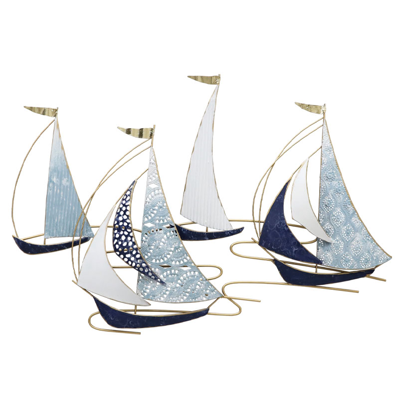 ΜΕΤΑΛΛΙΚΟ ΔΙΑΚΟΣΜΗΤΙΚΟ ΤΟΙΧΟΥ 4 ΚΑΡΑΒΙΑ ΧΡΥΣΟ/ΜΠΛΕ – 83.8×54.6×5.1cm 4/ΚΙΒ