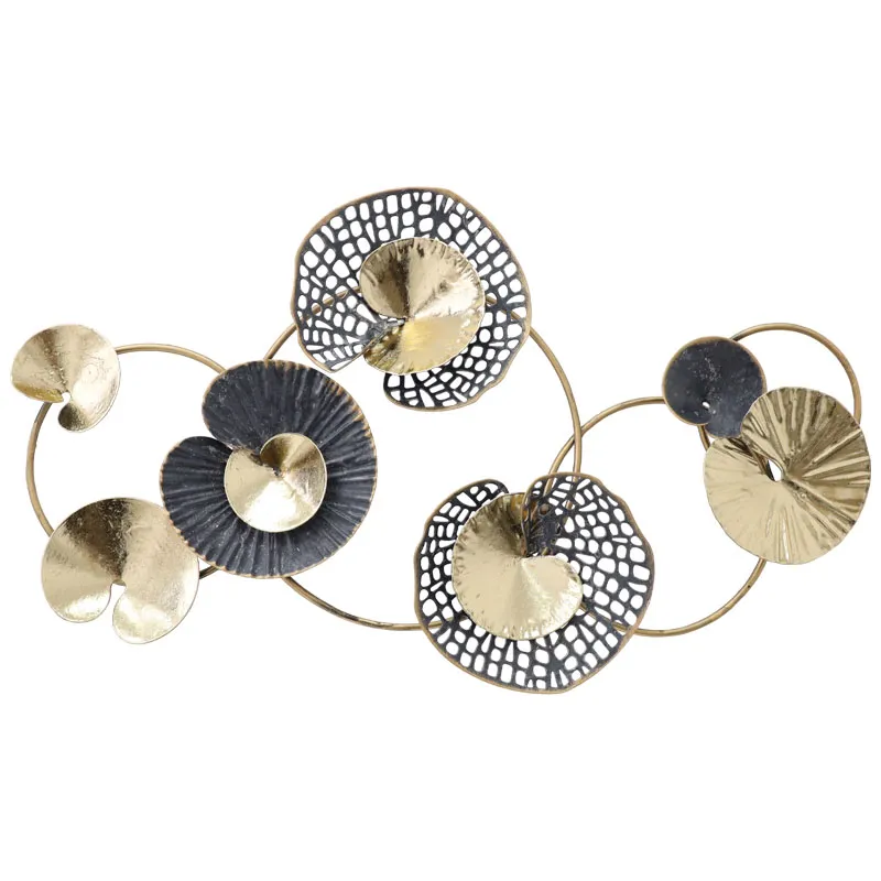 ΜΕΤΑΛΛΙΚΟ ΤΟΙΧΟΥ ΧΡΥΣΟ/ΓΚΡΙ ΓΡΑΜΜΙΚΟ ΣΧΕΔΙΟ ΚΥΚΛΟΙ – 55.2×32.4×5.1cm 4/KIB