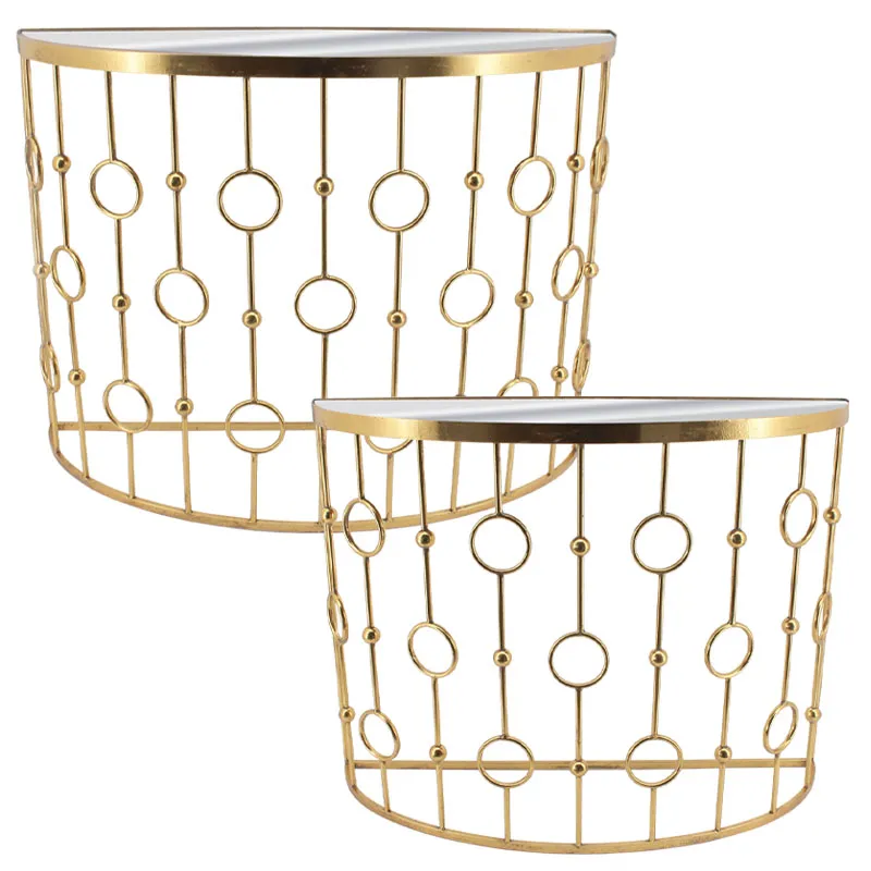 ΜΕΤΑΛΛΙΚΟ ΤΡΑΠΕΖΑΚΙ ΣΕΤ/2 ΧΡΥΣΟ ΗΜΙΚΥΚΛΙΚΟ/ΚΥΚΛΟΙ/ΚΑΘΡΕΠΤΗΣ – L:100.5×35.5×75.5, S:90.5×30.5x70cm 1/KIB