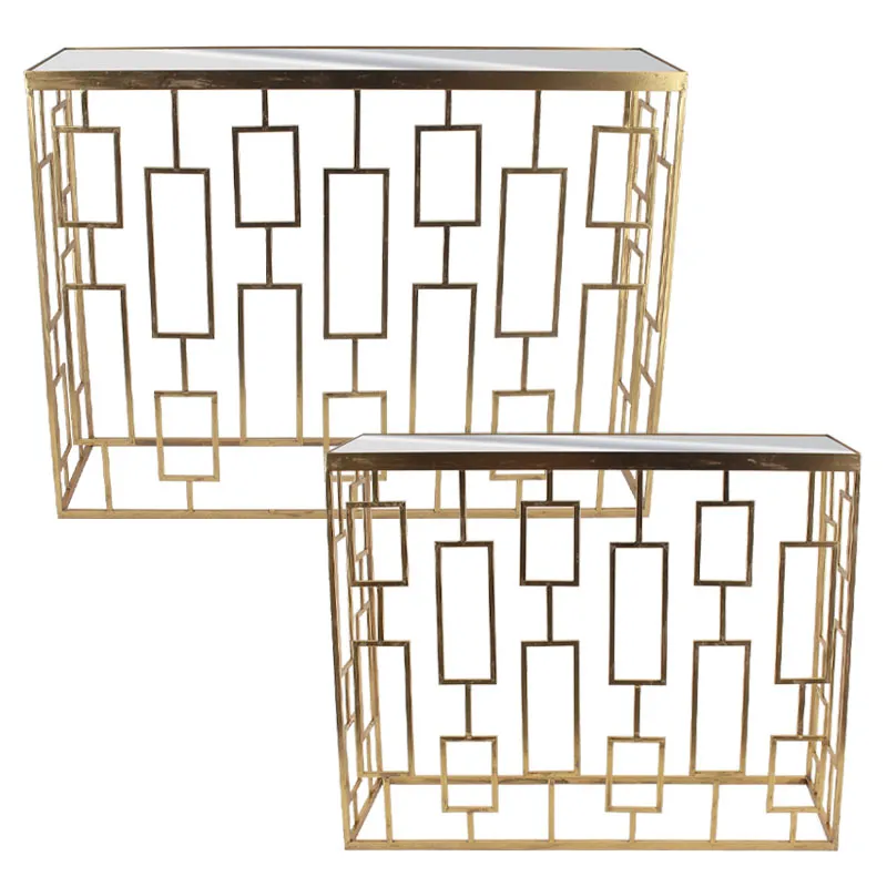 ΜΕΤΑΛΛΙΚΟ ΤΡΑΠΕΖΑΚΙ ΣΕΤ/2 ΧΡΥΣΟ ΟΡΘΟΓΩΝΙΟ/ΠΛΑΙΣΙΑ/ΚΑΘΡΕΠΤΗΣ – L:100x30x75, S:80.5x25x68.5cm 1/KIB