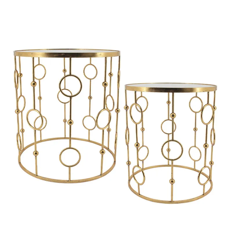 ΜΕΤΑΛΛΙΚΟ ΤΡΑΠΕΖΑΚΙ ΣΕΤ/2 ΧΡΥΣΟ ΣΤΡΟΓΓΥΛΟ/ΚΥΚΛΟΙ/ΚΑΘΡΕΠΤΗΣ – L:Φ51×56.5, S:Φ44x51cm 1/KIB