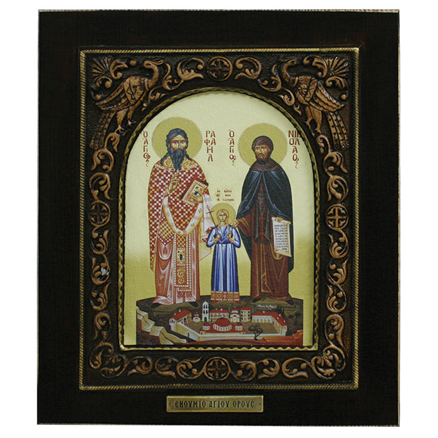 ΞΥΛΙΝΗ ΑΝΑΓΛΥΦΗ ΕΙΚΟΝΑ ΑΓΙΟΙ ΡΑΦΑΗΛ-ΝΙΚΟΛΑΟΣ-ΕΙΡΗΝΗ ΣΕ ΚΟΥΤΙ – 24x28cm
