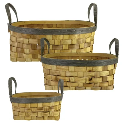 ΚΑΛΑΘΟΥΝΕΣ ΡΑΤΑΝ ΣΕΤ3 ΦΥΣΙΚΟ ΚΑΦΕ/ΜΠΕΖ ΣΤΡΟΓΓΥΛΟ ΣΕ ΠΛΕΞΗ ΡΙΓΕ – L:Φ48×41, M:Φ37×32, S:Φ29x25cm 2/KIB