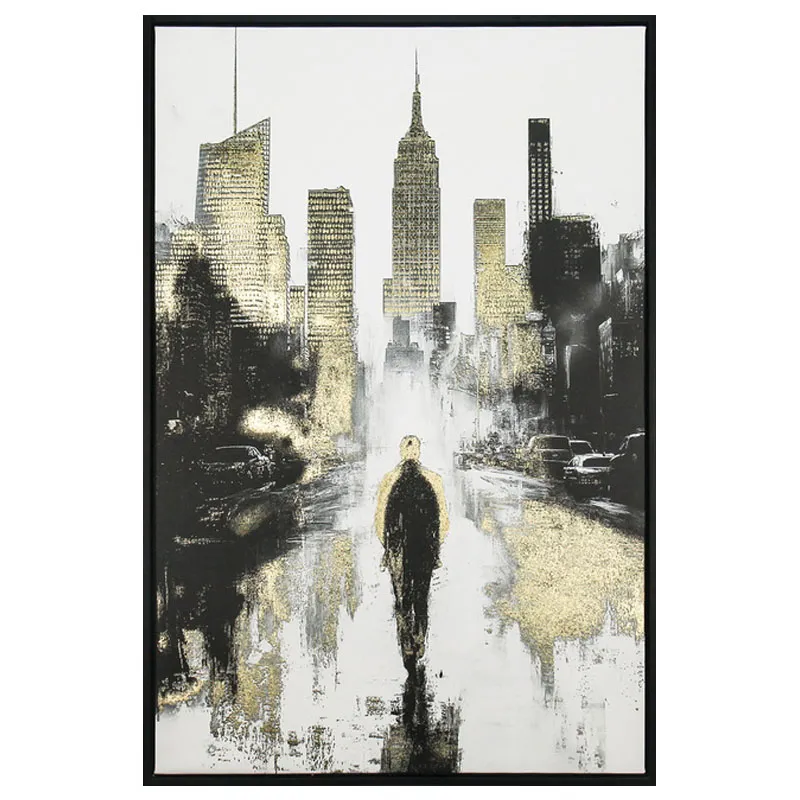 ΠΙΝΑΚΑΣ ΚΑΜΒΑΣ ΒΟΛΤΑ ΣΤΗ ΝΕΑ ΥΟΡΚΗ ΑΣΠΡΟΜΑΥΡΟ/ΧΡΥΣΟ ΣΕ ΚΟΡΝΙΖΑ – 60x90x4cm 12/ΚΙΒ