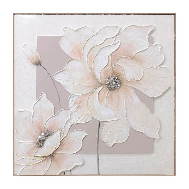 ΠΙΝΑΚΑΣ ΚΑΜΒΑΣ 2 ΑΝΘΗ & ΜΠΟΥΜΠΟΥΚΙΑ ΛΕΥΚΟ/ΚΑΦΕ ΣΕ ΚΟΡΝΙΖΑ – 3D ΣΤΟΙΧΕΙΑ – 80x80cm 6/KIB