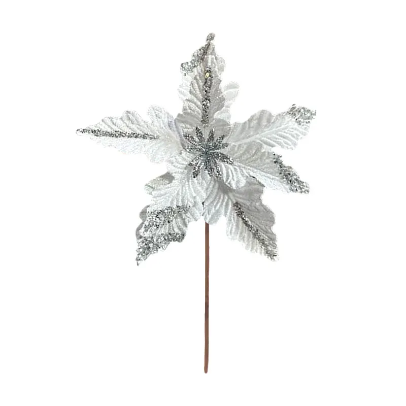 ΧΡΙΣΤΟΥΓΕΝNΙΑΤΙΚΟ ΠΙΚ ΑΛΕΞΑΝΔΡΙΝΟ ΛΕΥΚΟ/ΑΣΗΜΙ ΜΕ ΓΚΛΙΤΕΡ – Φ35cm Υ30cm 360/ΚΙΒ