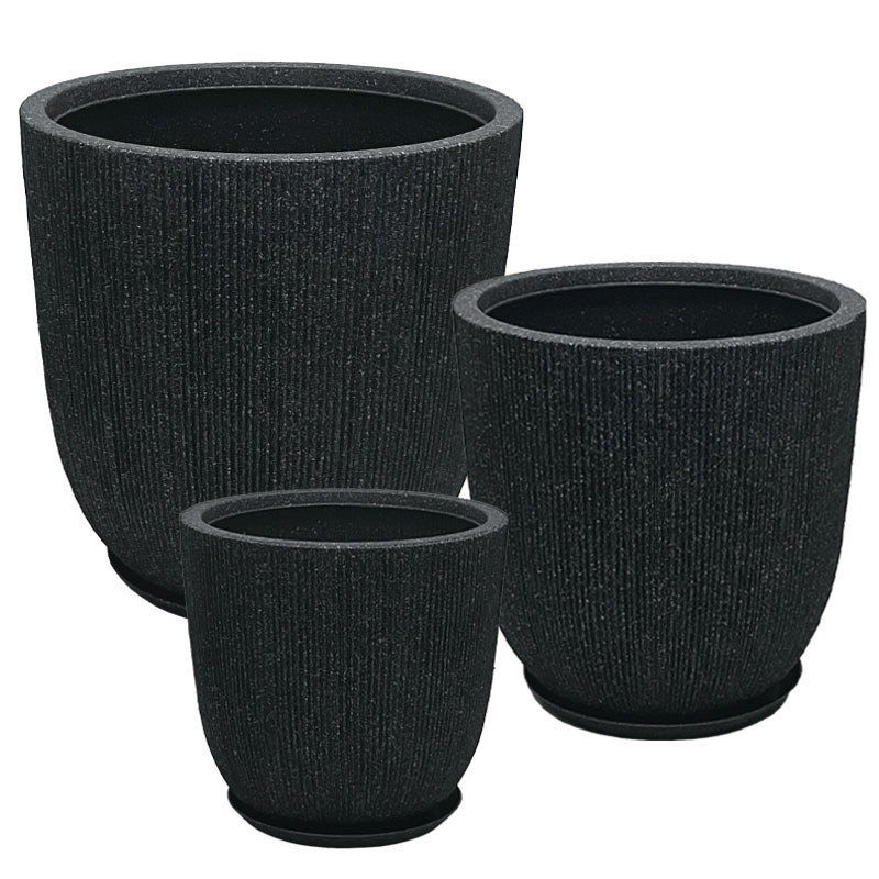 POLYRESIN ΚΑΣΠΩ ΜΕ ΠΙΑΤΟ ΣΕΤ/6 ΜΑΥΡΟ ΓΡΑΝΙΤΗ ΡΙΓΩΤΟ – L:Φ44×44.5, M:Φ37×37.5, S:Φ31×31.5cm