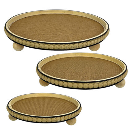 ΔΙΣΚΟΙ MDF ΣΕΤ3 ΦΥΣΙΚΟ ΚΑΦΕ/ΜΑΥΡΟ ΣΤΡΟΓΓΥΛΟΙ ΜΕ ΠΟΔΑΡΑΚΙΑ ΚΑΙ ΡΑΤΑΝ ΠΛΕΞΗ – L:Φ35×6, Μ:30×6, S:26x6cm 20/KIB