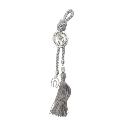 ΓΟΥΡΙ ΚΡΕΜΑΣΤΟ ΑΣΗΜΙ ΚΟΡΔΟΝΙ ΓΚΡΙ, ΚΥΚΛΟΣ-ΕΥΧΕΣ-ΜΑΤΙ ΣΜΑΛΤΟ ΣΙΕΛ/ΛΕΥΚΟ – Y20cm